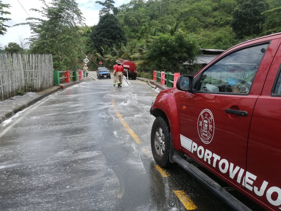 se realiza el lavado de algunas calles en la parroquia Pueblo Nuevo. Gracias al Cuerpo de Bombero de Portoviejo y Pueblo Nuevo al Mayor Williams Mera Zambrano en coordinación con el GAD. Parroquial